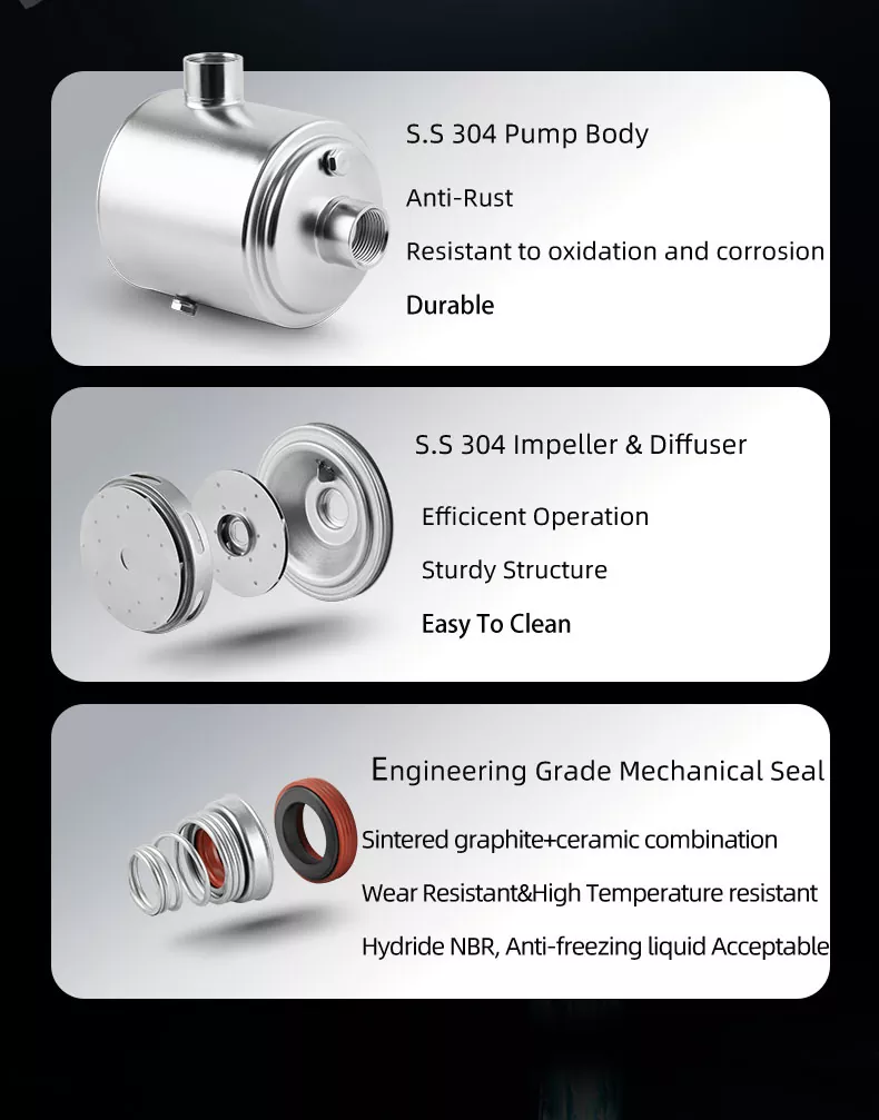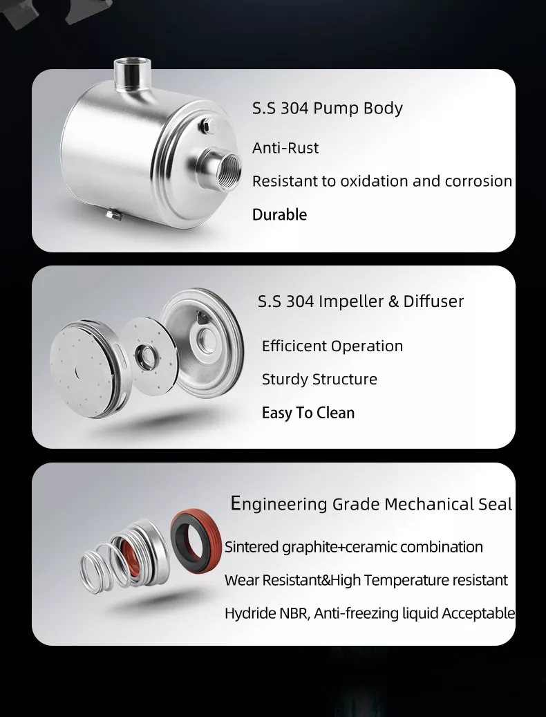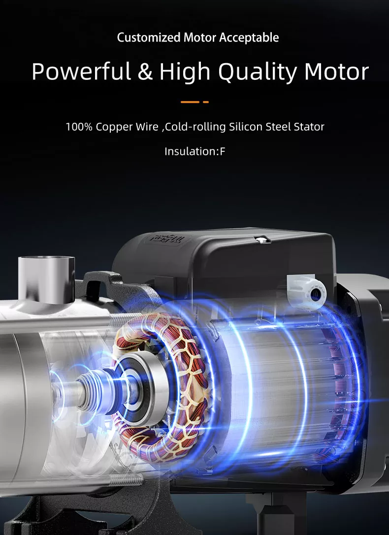 جو چیز ہمارے سمارٹ ملٹیجج پریشر پمپ کو الگ کرتی ہے وہ اس کی ذہین خصوصیات ہیں جو آپریشن کو ہوا کا جھونکا بناتی ہیں۔ اس کی سمارٹ ٹکنالوجی کی بدولت ، آپ کو دباؤ کی سطح کو ایڈجسٹ کرنے کی ضرورت نہیں ہے۔ پیچیدہ کنٹرولوں اور دستی ایڈجسٹمنٹ کو الوداع کریں - یہ پمپ پمپنگ پانی سے اندازہ لگاتا ہے اور ہر بار زیادہ سے زیادہ کارکردگی کو یقینی بناتا ہے۔